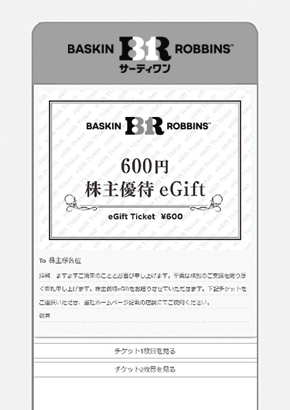 弊社製品と引き替えできる「eGift(電子ギフト)」1,200円分(600円×2枚)を贈呈いたします。 |