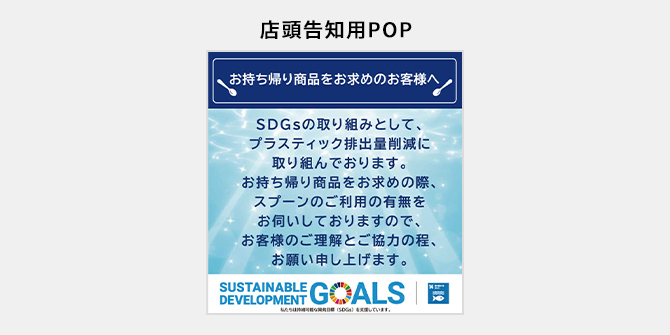 お持ち帰りのお客様にプラスチックスプーンの必要有無を確認するため、お声がけを行っております。お客様のご理解とご協力をお願いいたします。