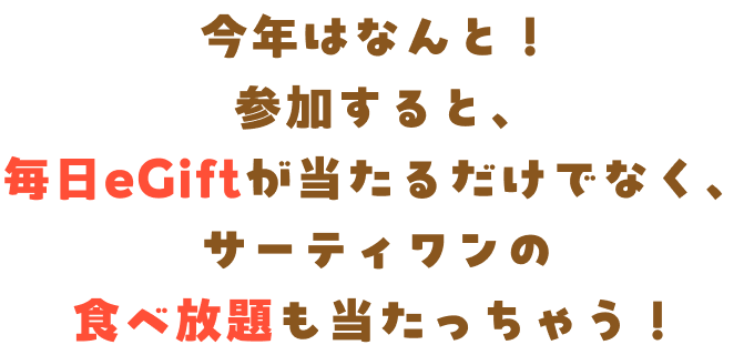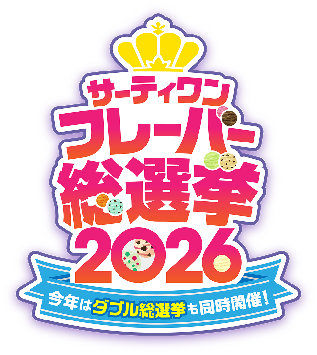最新情報は公式Xをチェック!100種類のフレーバーから No.1を決定!!サーティワン フレーバー総選挙2026開催します!今年はなんと!参加すると、毎日eGiftが当たるだけでなく、サーティワンの食べ放題も当たっちゃう!毎日投票OK!投票する